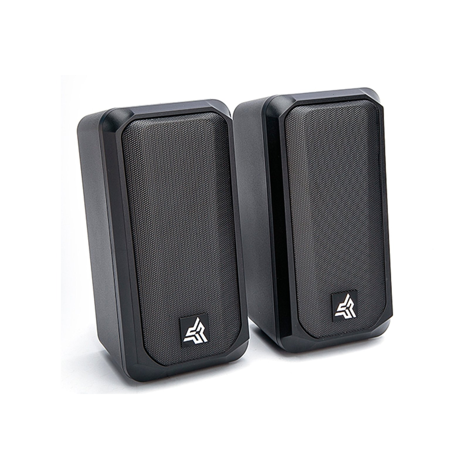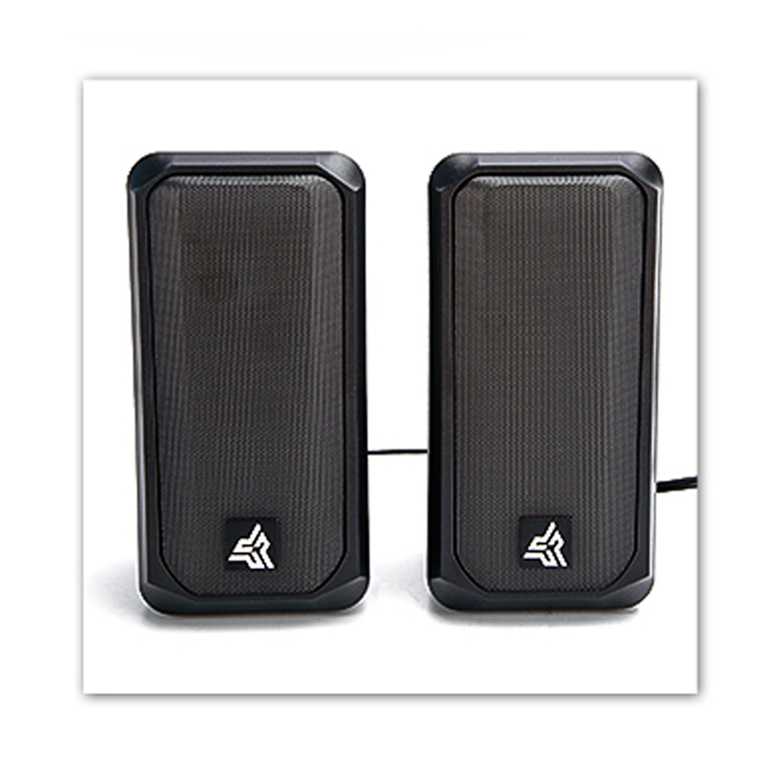 Altavoces estéreo multimedia con sonido claro y balanceado para uso en PC o laptop.